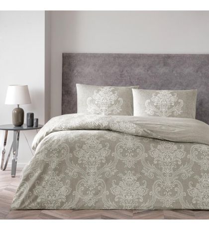 Imprimeul cu detalii ornamentale adaugă un plus de rafinament dormitorului tău. Nuanțele subtile de bej se integrează ușor în orice decor, creând un ambient cald și primitor. Fiecare element al lenjeriei este gândit pentru a oferi un aspect impecabil și un stil clasic modern.