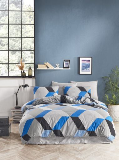 Lenjerie de pat dublu din bumbac ranforce Begenal Petek Mavi