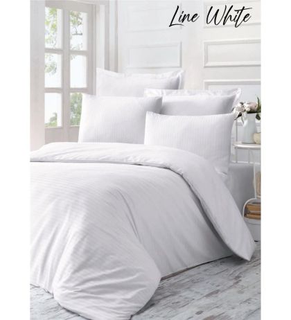 Alege lenjeria de pat King Bumbac 100% Exclusive Satin Delux Victoria Line White pentru un somn odihnitor și un decor elegant al dormitorului tău!
