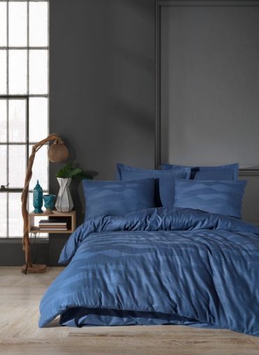 Lenjerie de Pat King Supreme Saheser Greta Dark Blue – Eleganță și Confort Desăvârșit