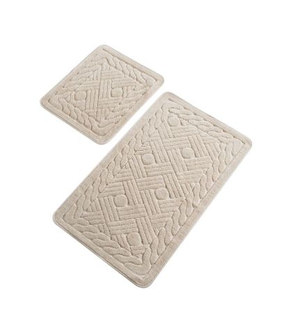 Setul include două covoare, unul pentru zona de ieșire din cadă sau duș și unul pentru chiuvetă. Designul elegant și culoarea neutră se integrează perfect în orice decor de baie, adăugând un plus de căldură și confort.