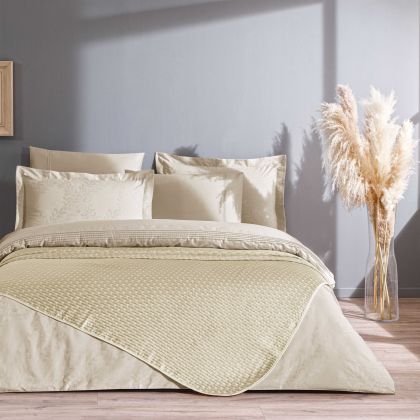Modelul Gabriella se remarcă prin designul său complex și atractiv. Țesătura jacquard adaugă o textură unică și un model subtil, dar distinct, care va transforma aspectul dormitorului tău. Bumbacul satinat, cu luciul său delicat, oferă o senzație plăcută la atingere și un aspect vizual deosebit.